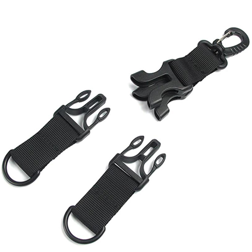 Diverse soorten hangsystemen gemaakt van sterk nylon band. Kan je bijvoorbeeld om je riem of rugzak vastzetten door middel van klittenband of een karabijnhaak. Super sterk en licht van gewicht en het hangsysteem blijft zitten op de plek waar je deze hebt geplaatst. Ze worden per stuk geleverd allemaal in de kleur zwart.